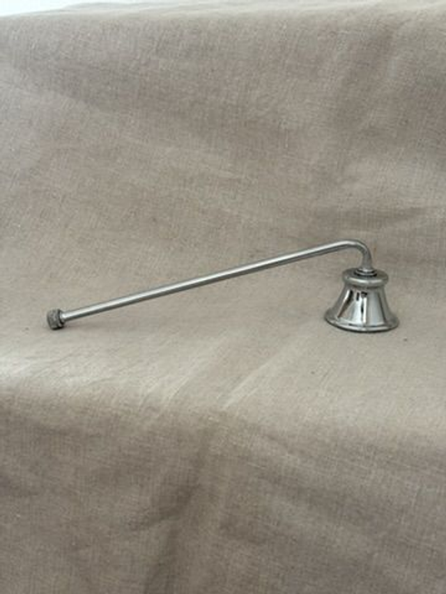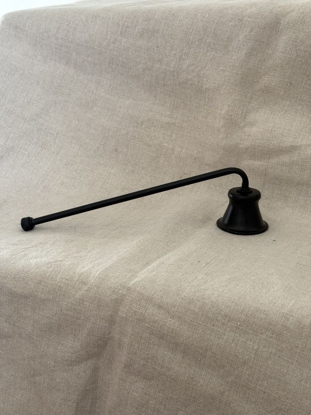 Apagador de velas de metal con diseño tipo campana, ideal para extinguir la llama de forma segura sin soplar, evitando humo, hollín y salpicaduras de cera. Su estilo minimalista y elegante lo convierte en un accesorio decorativo que acompaña el ritual de encendido con discreción y sofisticación.