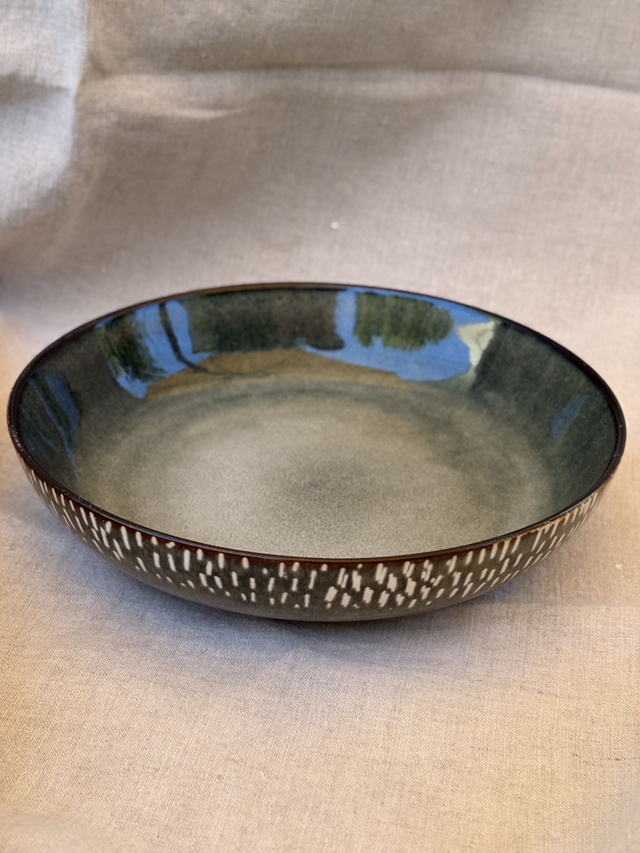 Fuente decorativa de cerámica jaspeada, ideal para crear velas de arena abiertas y aportar un toque artesanal a tus espacios. Su diseño simple y orgánico la convierte en una pieza versátil, perfecta como centro de mesa o elemento decorativo.