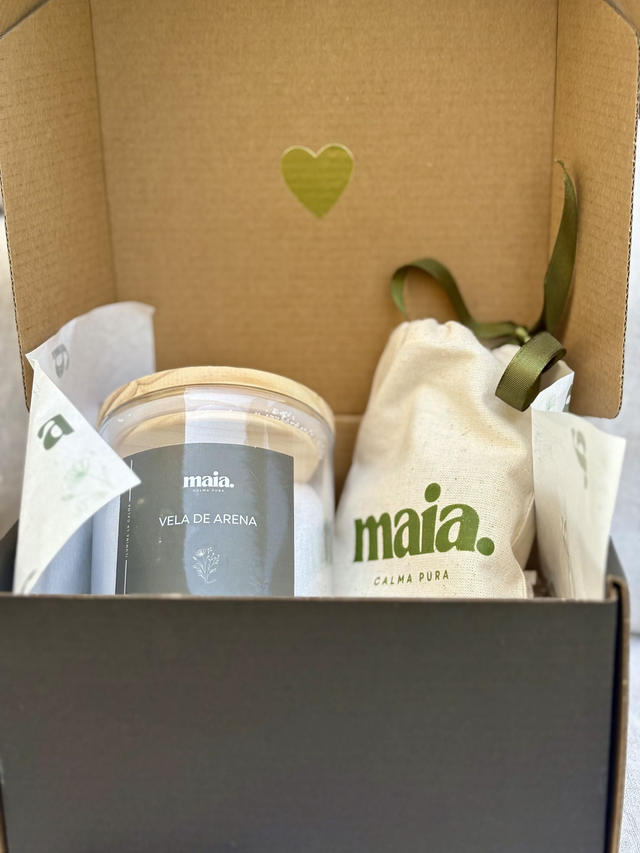 Caja especial San Valentín compuesta por una vela en arena Maia y una esencia a elección, pensada como un regalo completo, delicado y lleno de intención. Ideal para crear ambientes cálidos, personalizar aromas y regalar un momento de calma y luz.
