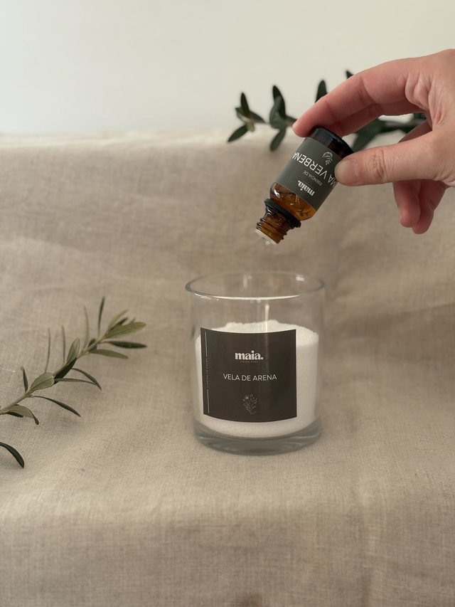 Incluye un frasco con 130 grs de vela en arena, dos frascos con mechas de repuesto y fósforos para encender cuando quieras.